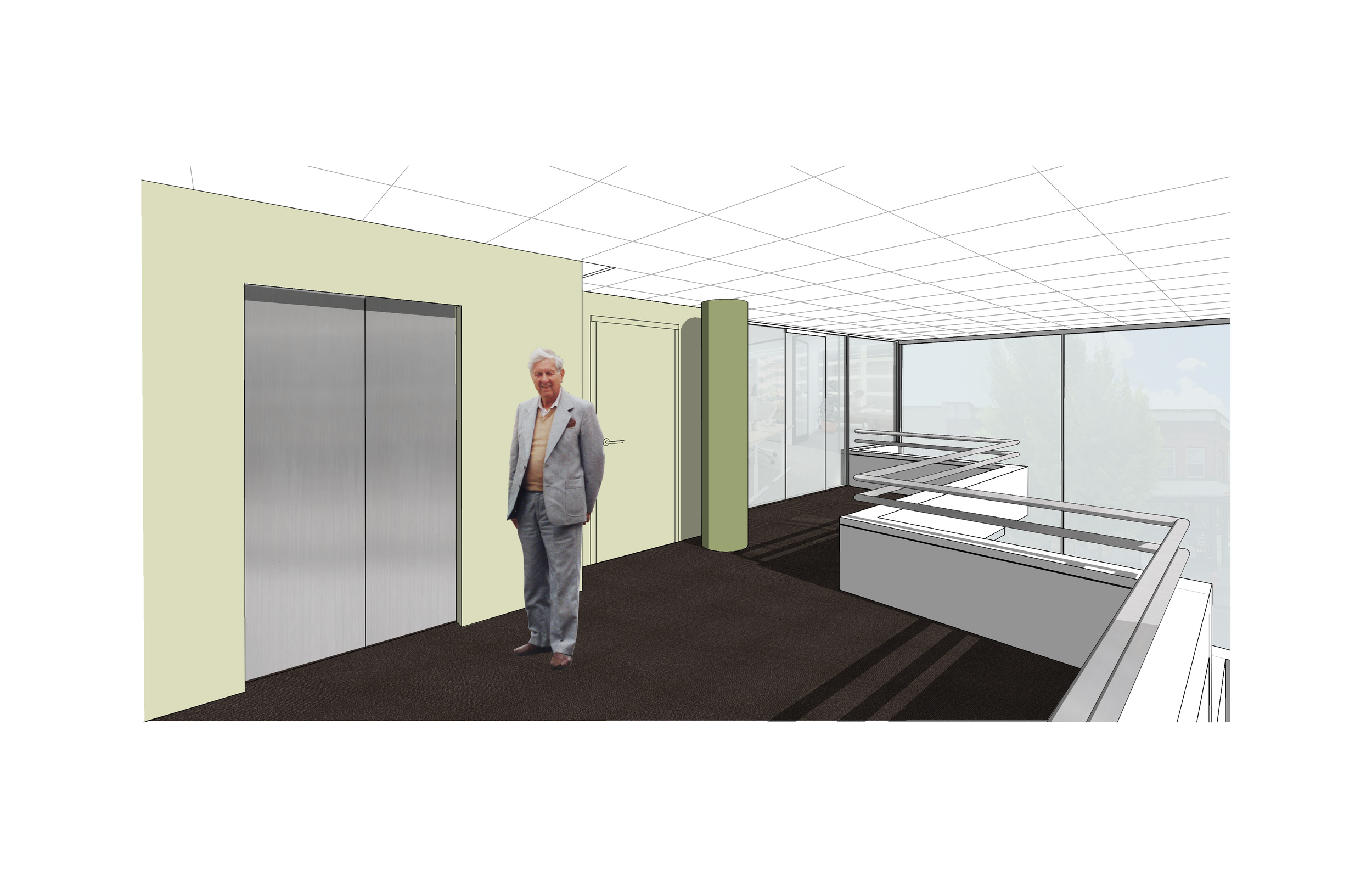 The renovation of the Center for Philanthropy Lobby features a series of subtle yet impactful interventions and refined material upgrades that transform the once-dated space into a bright, welcoming environment. The design highlights the public elevators and adjacent waiting area, while a newly added private access door to the second floor is seamlessly integrated to remain discreet and unobtrusive.